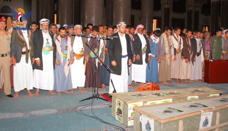 جرت مراسم التشييع لجثماني الشهيدين اللذين توشحا بالعلم الجمهوري بعد الصلاة عليهما في جامع الشعب بأمانة العاصمة، ليتم مواراتهما كل شهيد في مسقط رأسه.